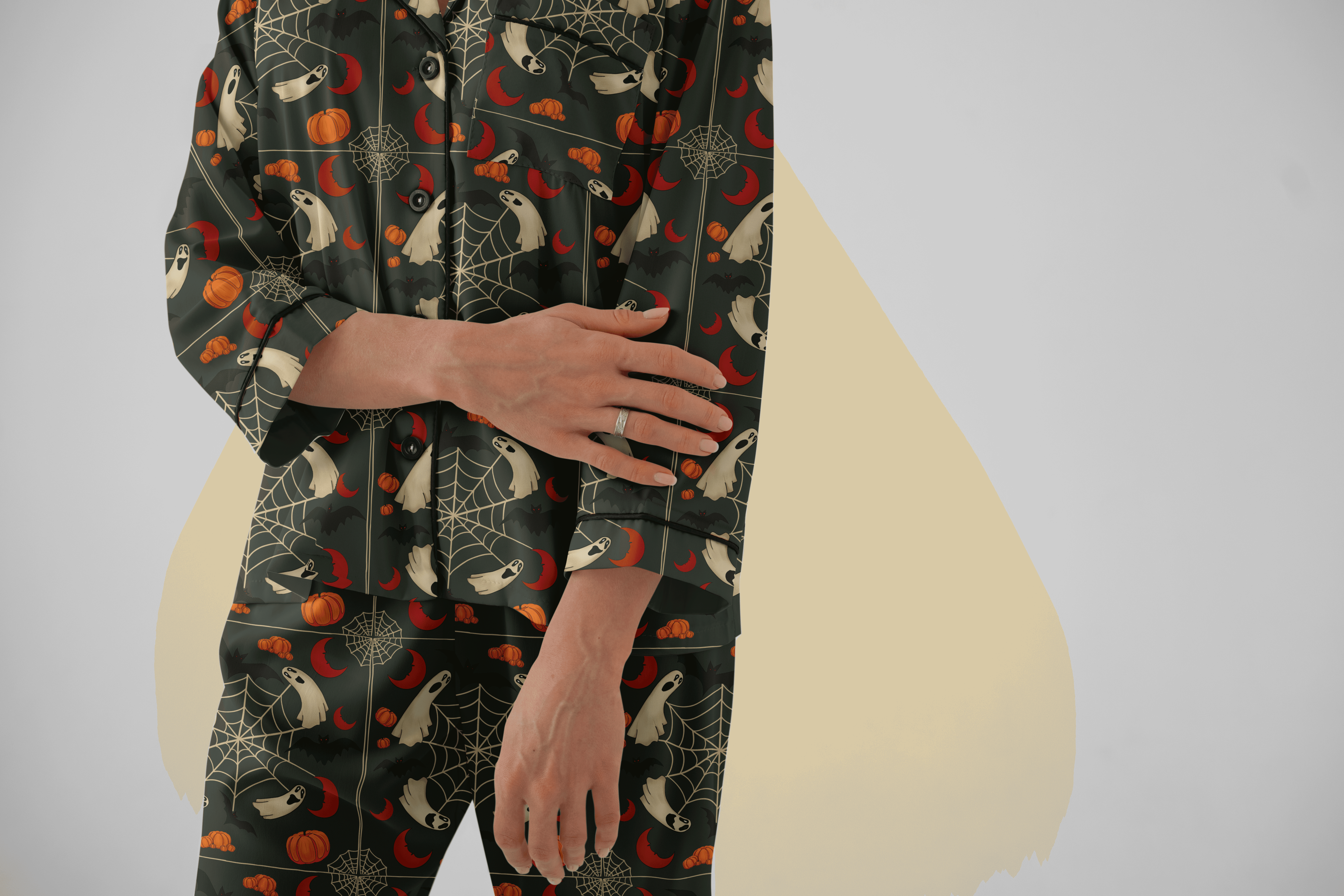 BLOODMOON. BOO! IS A PLAYFUL HALLOWEEN-THEMED ILLUSTRATION AND SURFACE DESIGN COLLECTION CREATED USING BOTH HAND-DRAWN AND DIGITAL TECHNIQUES. THE RANGE FEATURES REPEAT PATTERNS, HERO MOTIFS, AND CUSTOM LETTERING DESIGNED FOR APPAREL, STATIONERY, AND HOMEWARE. USING A PALETTE OF PUMPKIN ORANGE, BLOOD RED, AND DEEP GREEN, THE COLLECTION BALANCES SPOOKY CHARM WITH FESTIVE ENERGY AND CREATES A COHESIVE VISUAL IDENTITY SUITABLE FOR COMMERCIAL LICENSING.